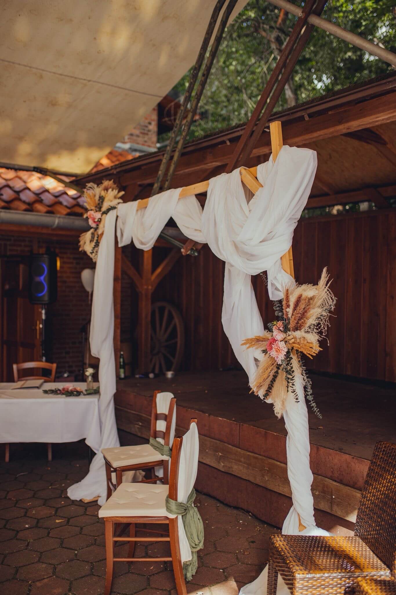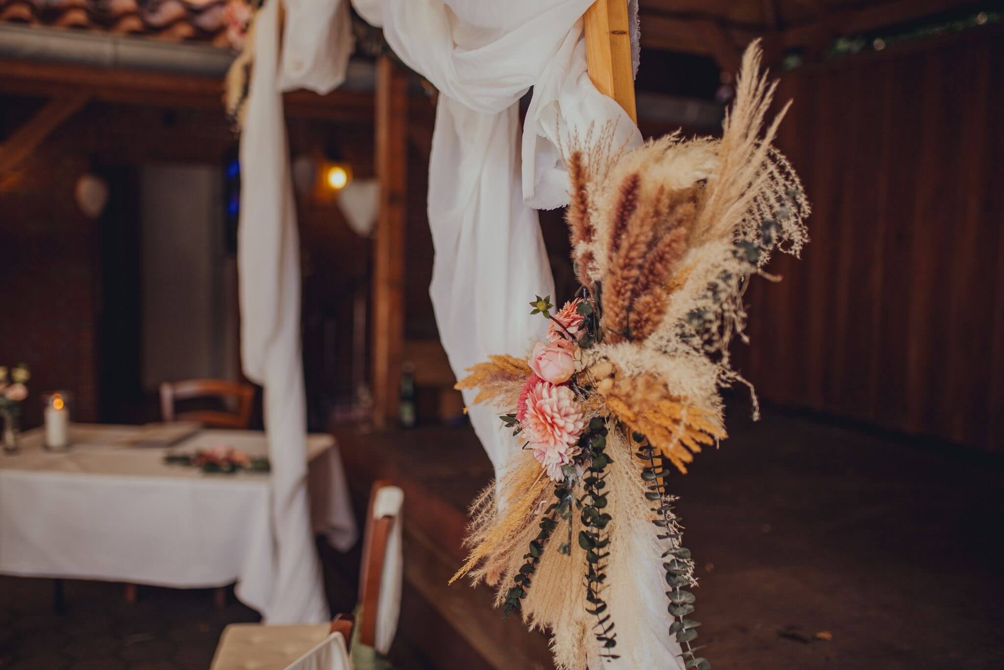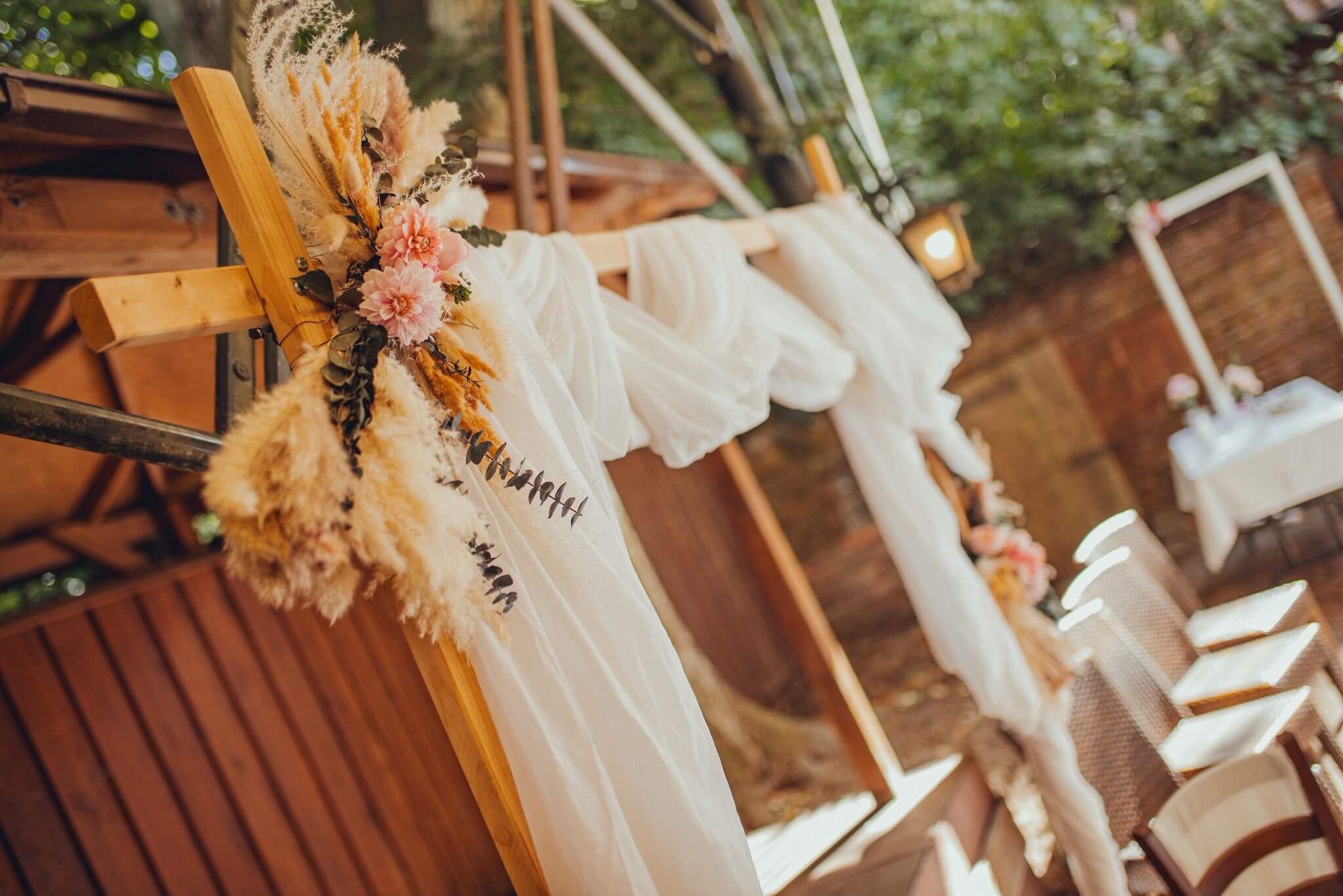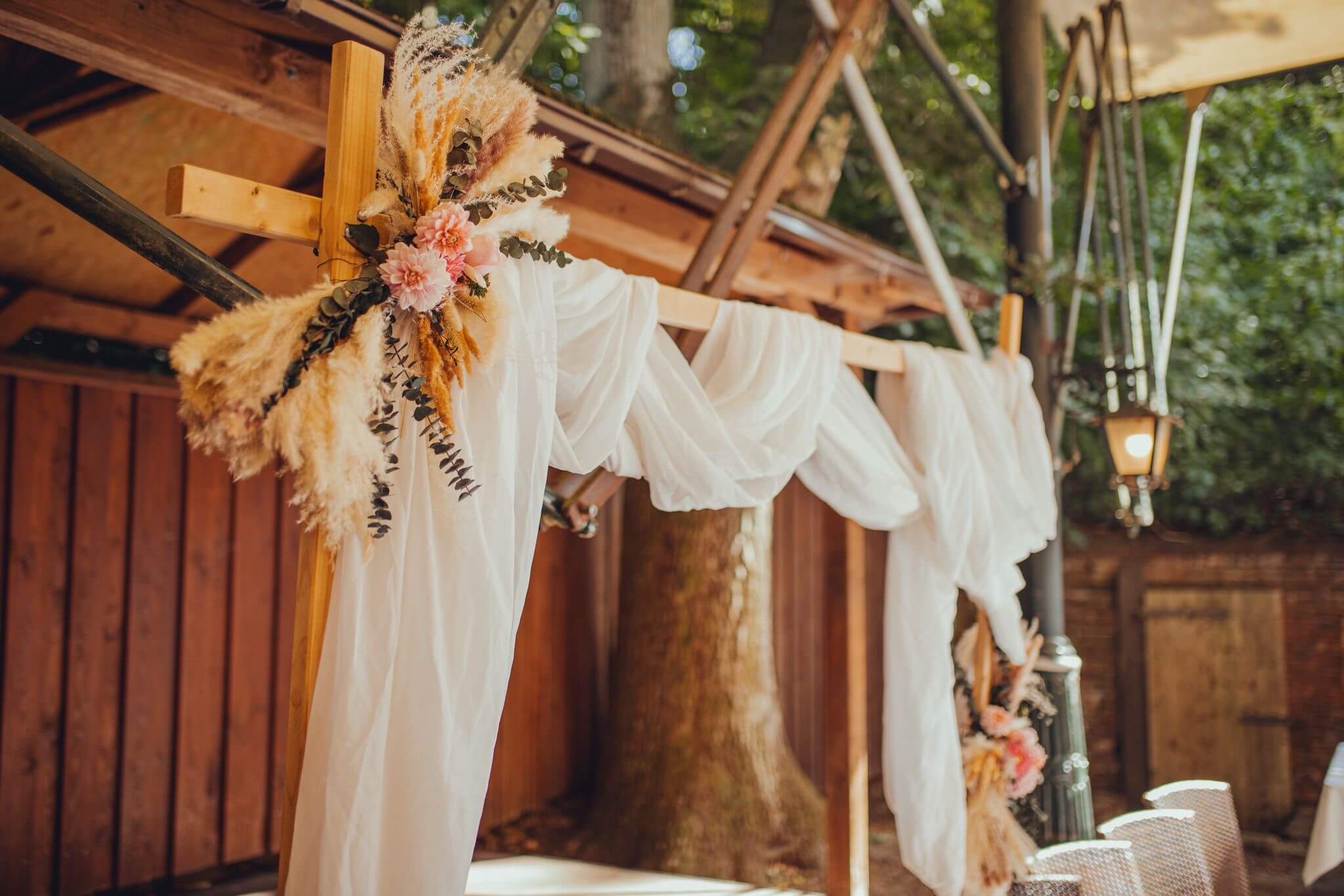 Romantischer Blickfang für eure Hochzeit: Der Traubogen eignet sich perfekt als Empfangsdekoration, Hintergrund für die freie Trauung oder als stilvolles Fotomotiv.